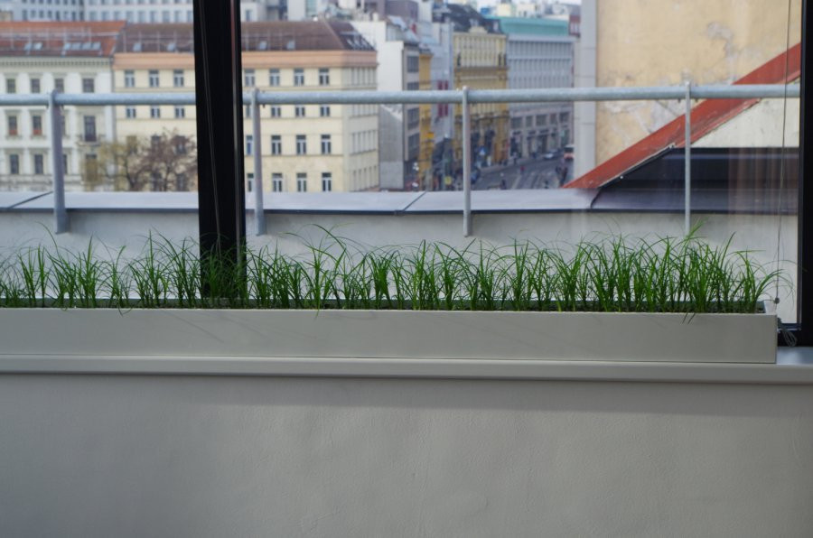 Zákazková výroba kvetináčov ponúka nepreberné možnosti použitia. Samozrejme, že prevažujú nádoby, ktoré svojou veľkosťou vybočujú z ponuky klasického obchodu alebo eshopu a môžeme ich označiť za kvetináče z kategórie XXL . Často však realizujeme tiež zákazky, ktoré nie sú svojou veľkosťou nejako nadštandardné. Atypickým prvkom sa však stáva dĺžka kvetináčov. U najdlhšieho truhlíka sme sa blížili dĺžke 3 metrov. V tomto prípade ide o pobočku jednej pražskej firmy a je nutné podotknúť, že kvetináče na mieru tu majú svoje opodstatnenie. Veľmi citlivo sa pracovalo s delením jednotlivých truhlíkov. Celý návrh a osadenie spracovala firma GREENPLEX z Brandýsa nad Labem. Ich profesionalita a skúsenosti sú viditeľné z každého ich projektu.
