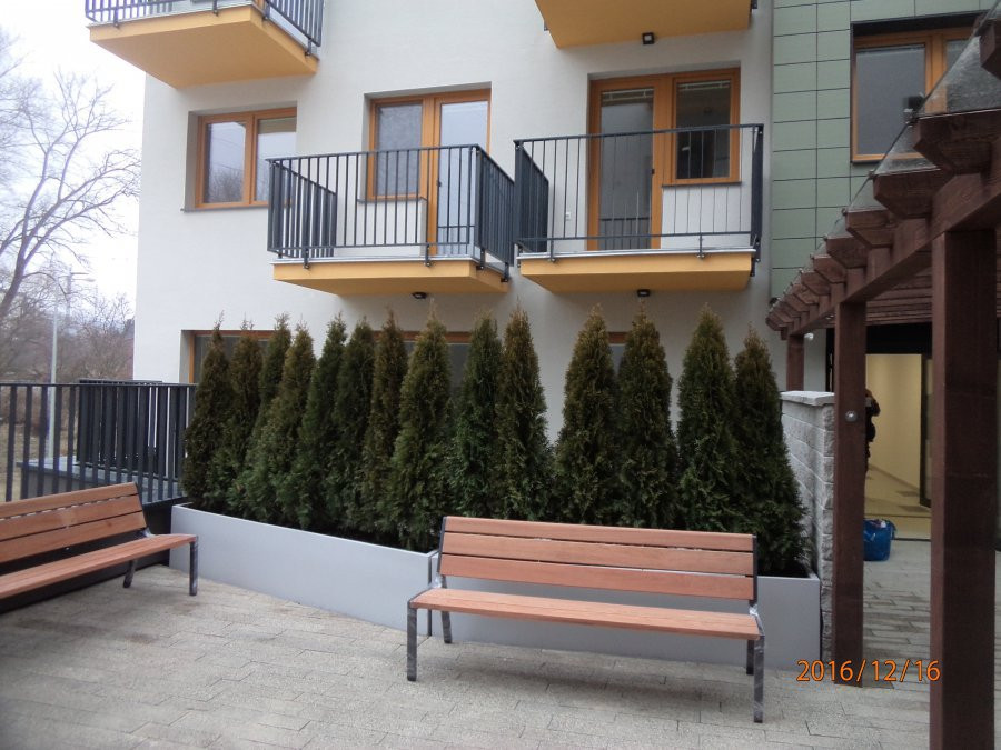 Kvetináče stále častejšie nachádzajú svoje miesto na verejnom priestranstve. Pred reštauráciami a hotelmi už sme si na truhlíky a okrasné kvetináče zvykli. Kvetináče a kvetinová výzdoba avšak patrí hlavne k našim obydliam, kde sa chceme cítiť dobre. Preto sa trendom posledných rokov stáva tiež kvalitnejšia bytová výstavba. Rezidenčné projekty, ktoré sú do posledných detailov naplánované a následne realizované, na zeleň kladú jednoznačne silný dôraz. Jedného z týchto projektov sme sa v novembri 2016 zúčastnili a vybavovali celý objekt v Bratislave truhlíkami na mieru. Na fotografiách si môžete prezrieť priestor pred inštaláciou nádob a rastlín a následne finálnu podobu. Považujeme možnosť prezrieť si daný priestor „pred a po“ za veľmi prínosný. Možno Vás tento porovnávací pohľad bude tiež inšpirovať a vonkajšie kvetináče už pre vás nebudú len záležitosťou reštaurácií a hotelov.