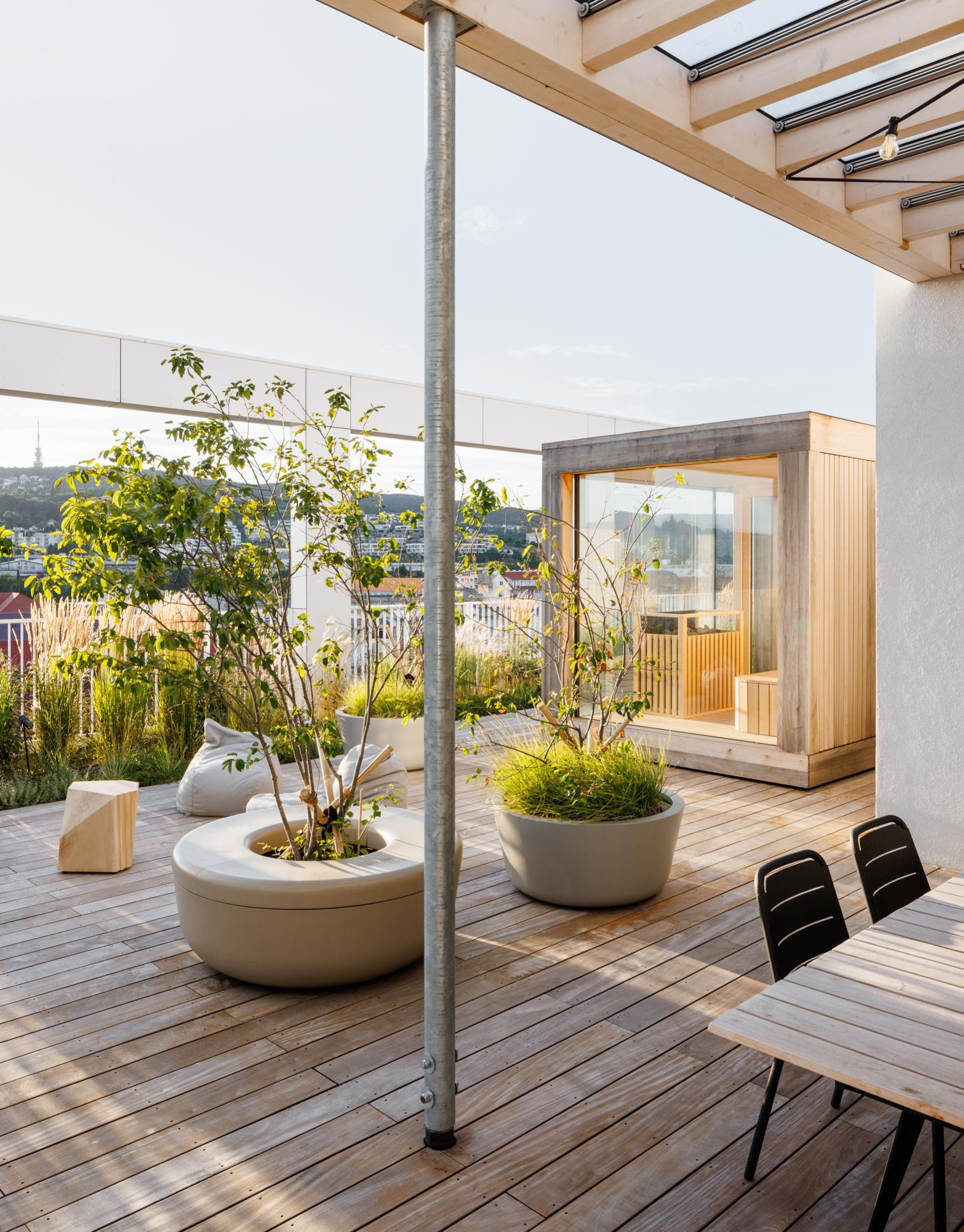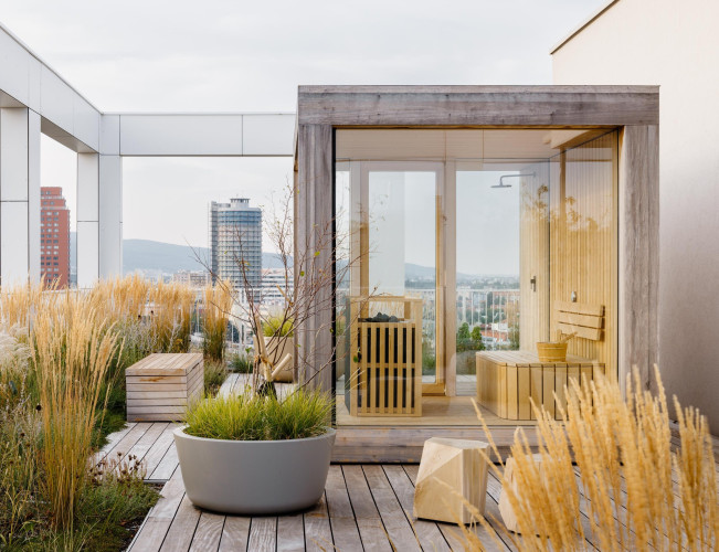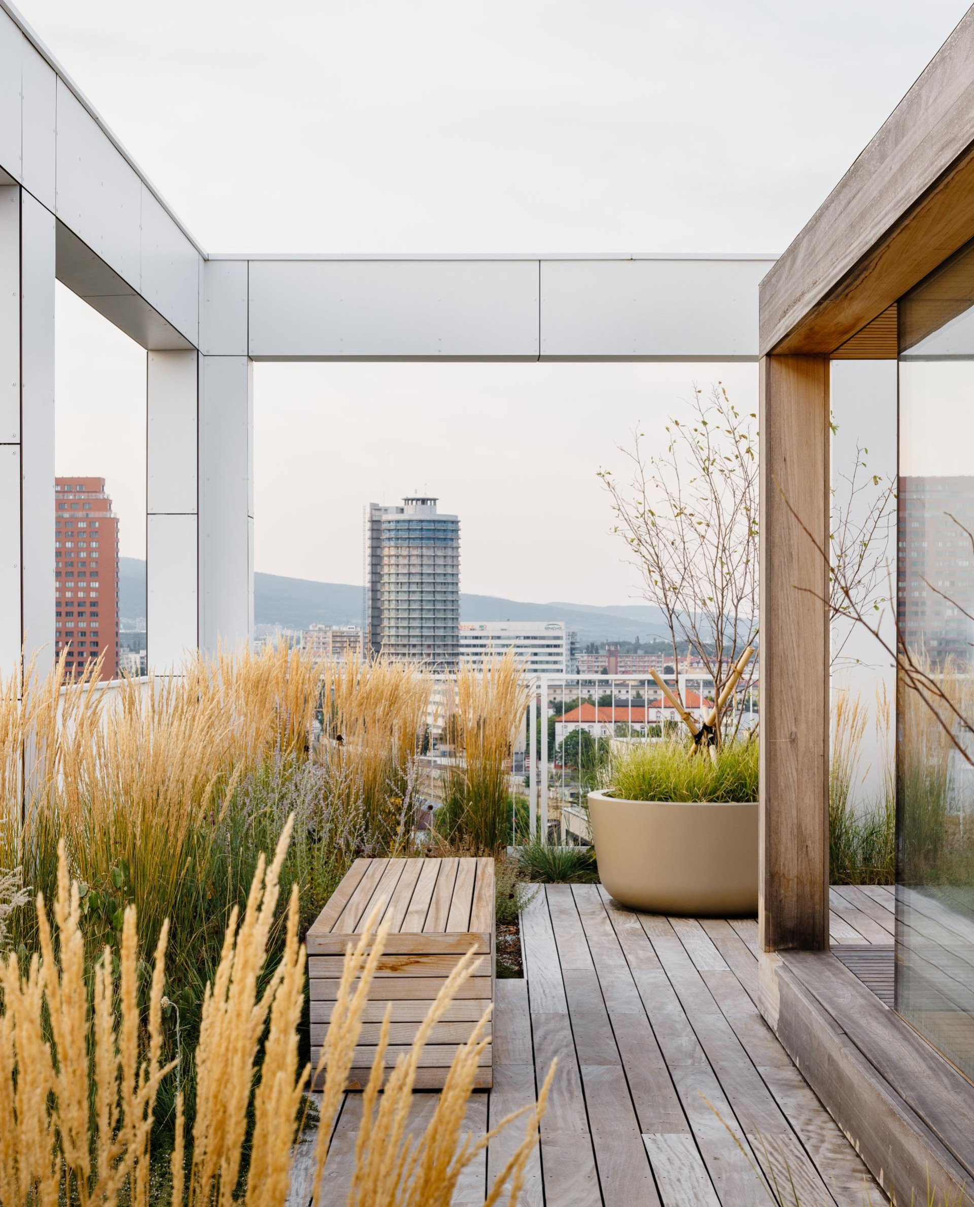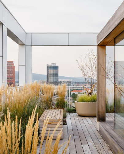 Súkromný majiteľ strešného bytu v novej výstavbe v Bratislave sa rozhodol pre inštaláciu kvetináčov na mieru, ktoré premenili jeho rozľahlú terasu na oázu pokoja a elegancie. Výber veľkých sklolaminátových kvetináčov v príjemnej béžovej farbe vytvoril harmonický priestor ideálny na odpočinok.V rámci realizácie bol použitý moderný a praktický kvetináč RELAX, ktorý kombinuje funkciu kvetináča a sedacieho prvku. Tento inovatívny prvok prináša na terasu nielen estetickú hodnotu, ale taktiež zvyšuje jej funkčnosť.